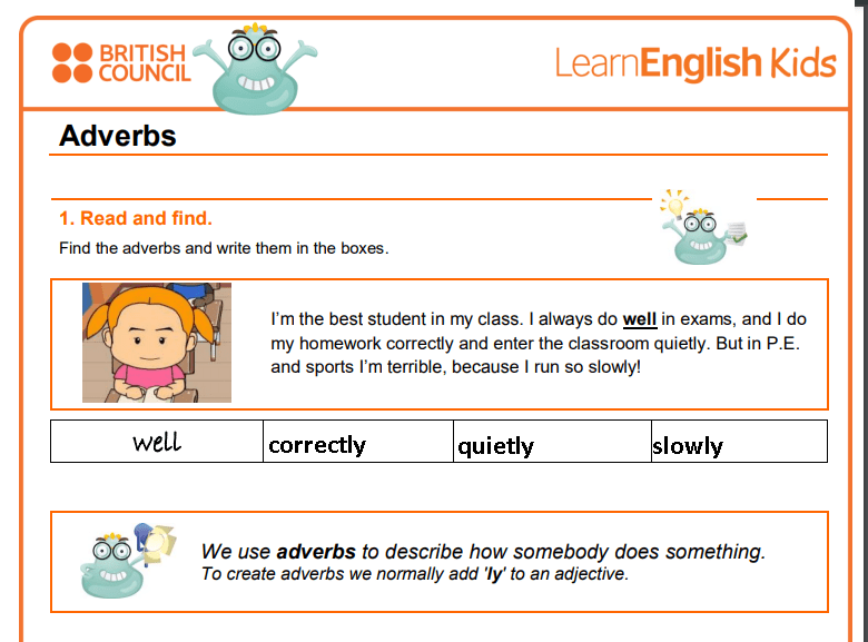 Play Grammar games, do the activity and the test. Adverbs | LearnEnglish Kids | British Council