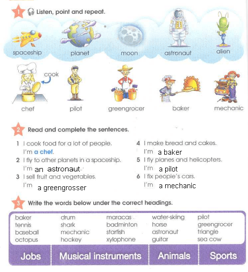 baker, mechanic, astronaut, pilot, greengrocer