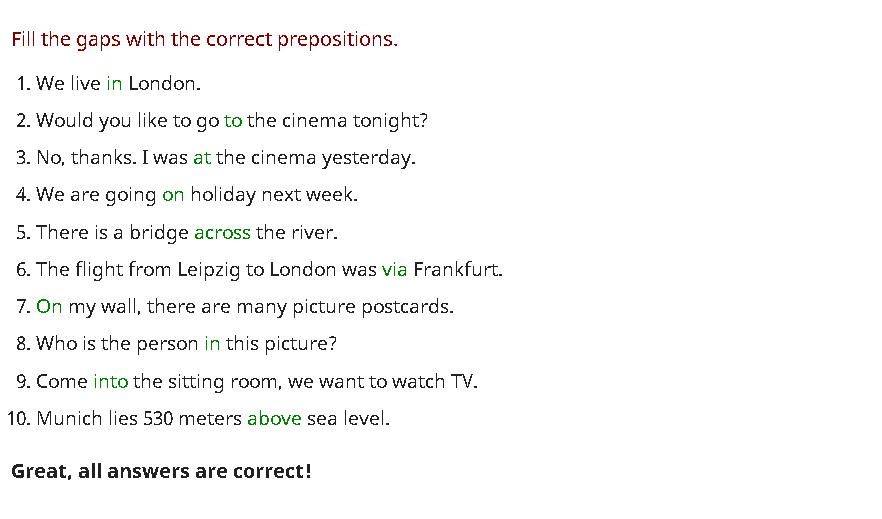 Թարգմանել նախադասությունները, սովորել նախդիրները